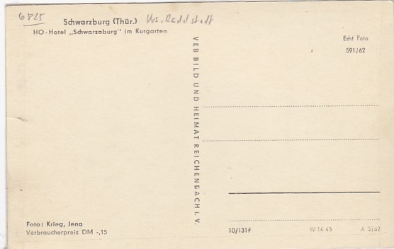 Schwarzburg in Thüringen Hotel Schwarzaburg 1960