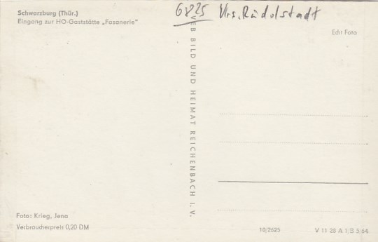 Schwarzburg in Thüringen Gaststätte Fasanerie 1961