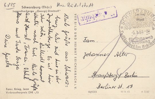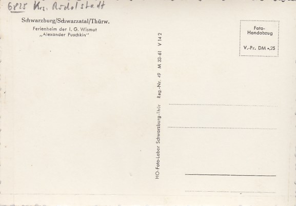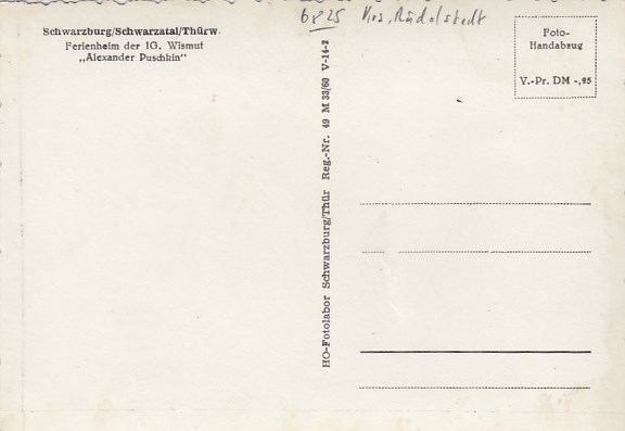 Schwarzburg in Thüringen Ferieheim Alexander Puschkin 1960