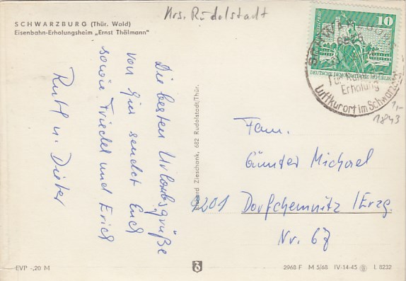 Schwarzburg in Thüringen Reichsbahn-Erholungsheim 1968