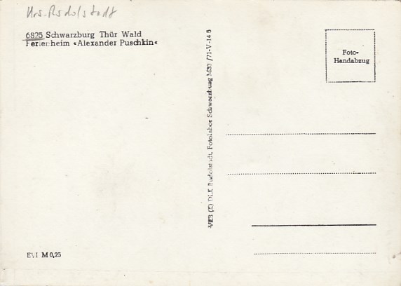 Schwarzburg in Thüringen Ferieheim Alexander Puschkin 1971