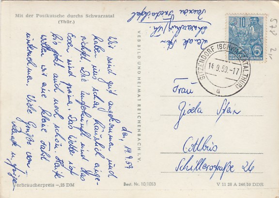 Schwarzburg in Thüringen Postkutsche Pferdekutsche 1959