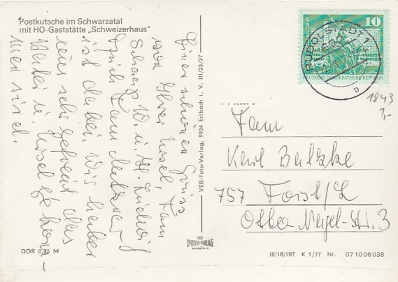 Schwarzburg in Thüringen Postkutsche Pferdekutsche 1977