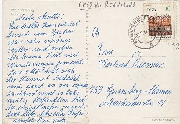 Bad Blankenburg in Thüringen Kirchen Allianzhaus 1961