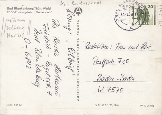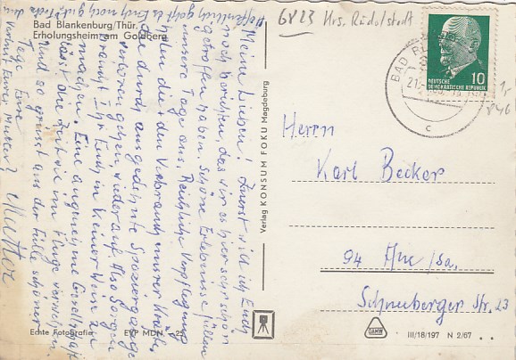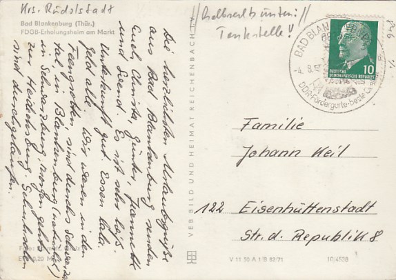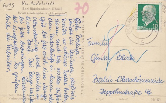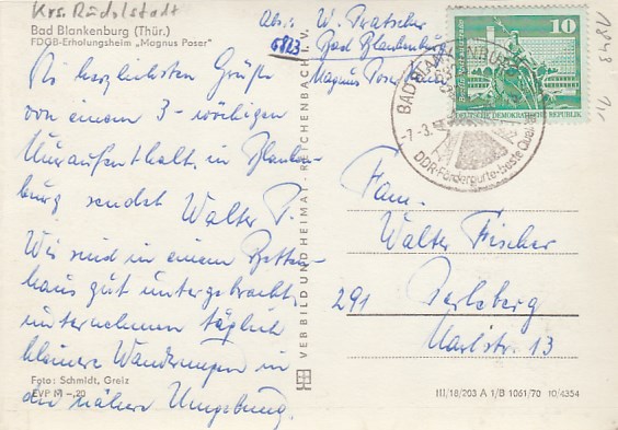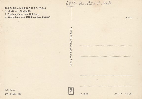 Bad Blankenburg in Thüringen FDGB-Heim 1969