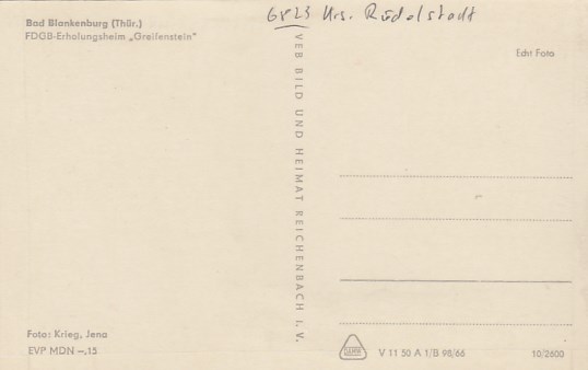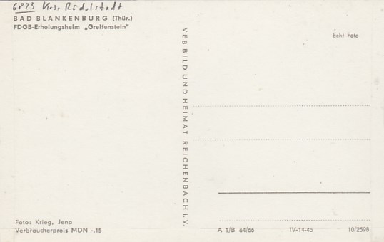 Bad Blankenburg in Thüringen FDGB-Heim Greifenstein 1966