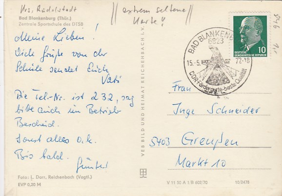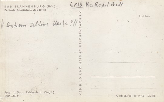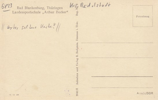 Bad Blankenburg in Thüringen Sportschule Arthur Becker 1956