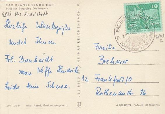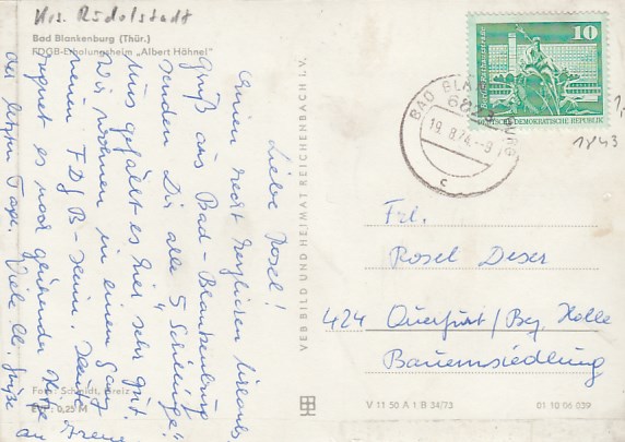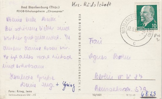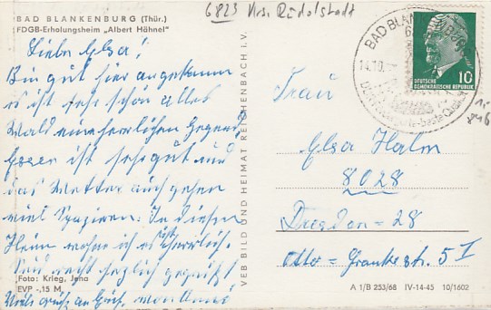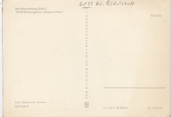 Bad Blankenburg in Thüringen Jugendherberge 1967
