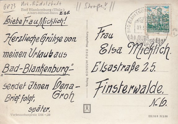 Bad Blankenburg in Thüringen Ferienheim Albert Hänel Schwarzatal 1968