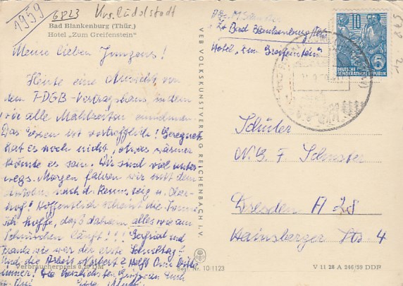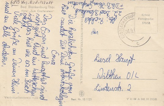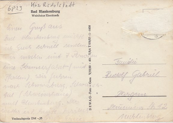 Bad Blankenburg in Thüringen Weinhaus Eberitzsch 1958