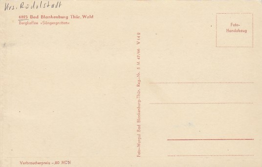 Bad Blankenburg in Thüringen Bergkaffee Sängergrotten 1963