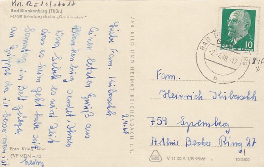 Bad Blankenburg in Thüringen Haus am Goldberg 1966