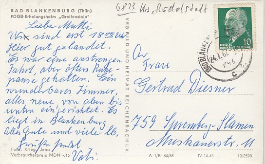 Bad Blankenburg in Thüringen Haus am Goldberg 1958