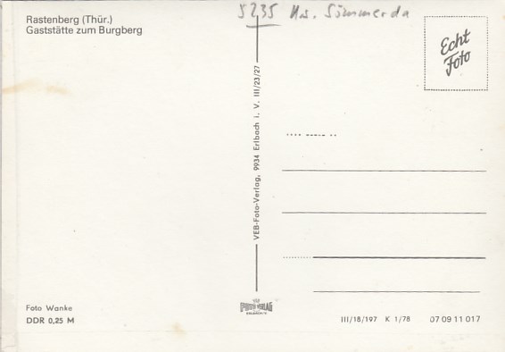 Rastenberg in Thüringen Gaststätte zum Burgberg 1978