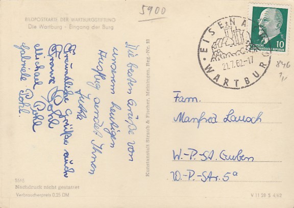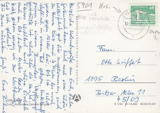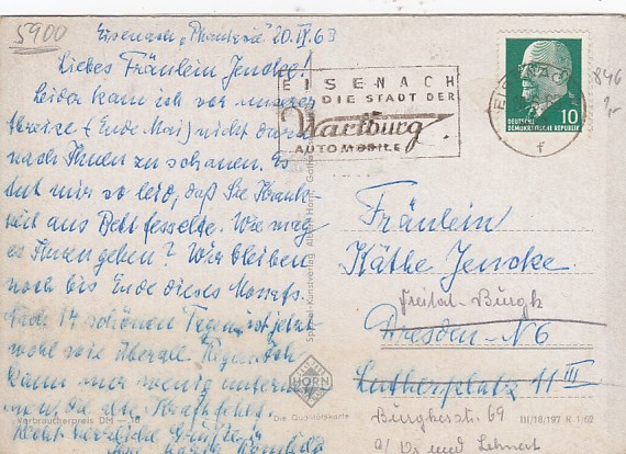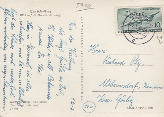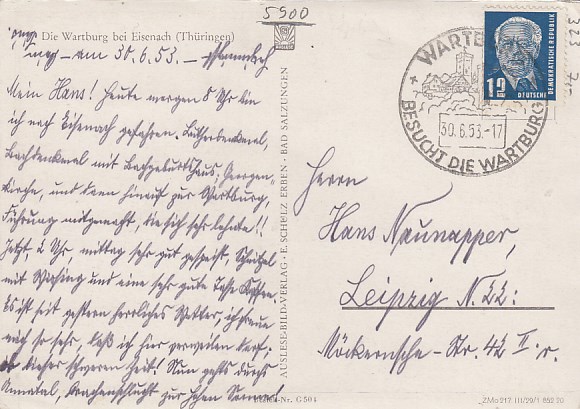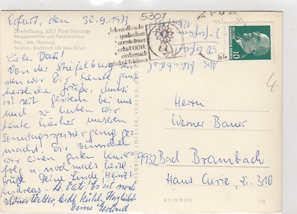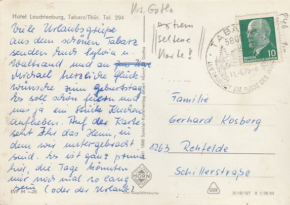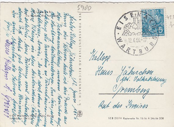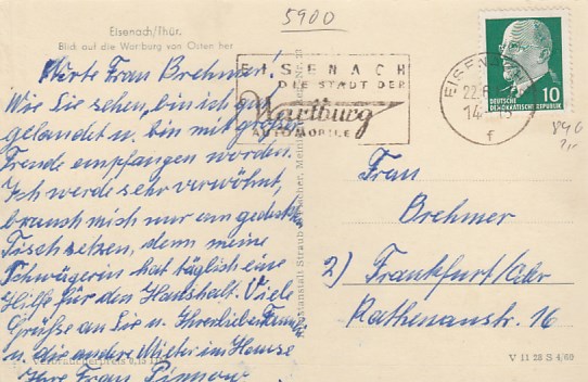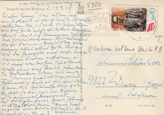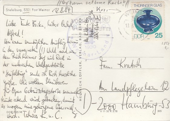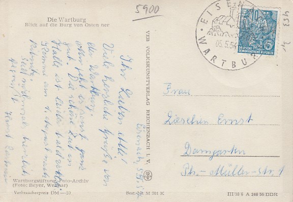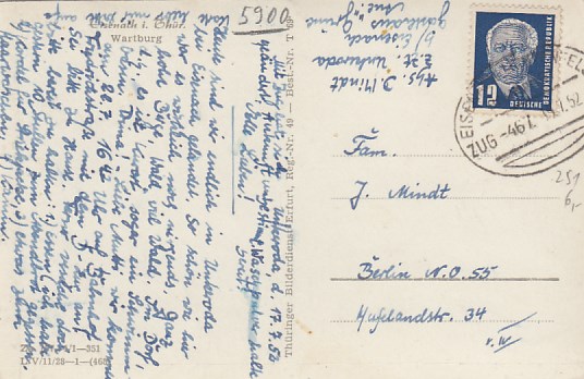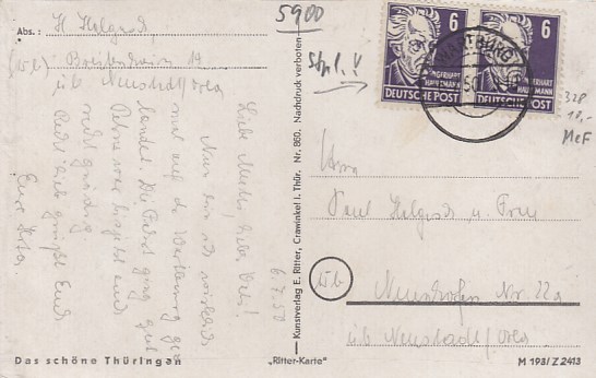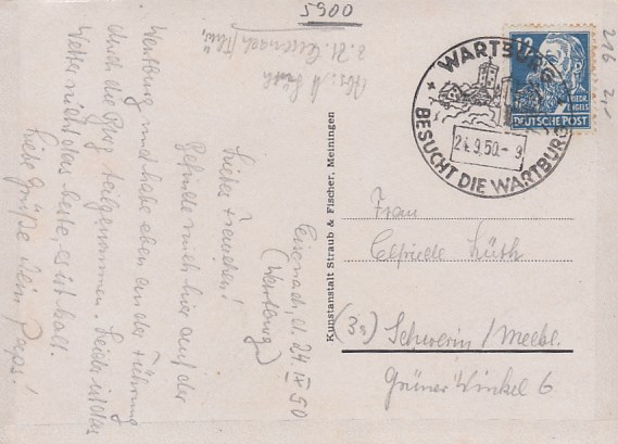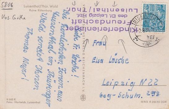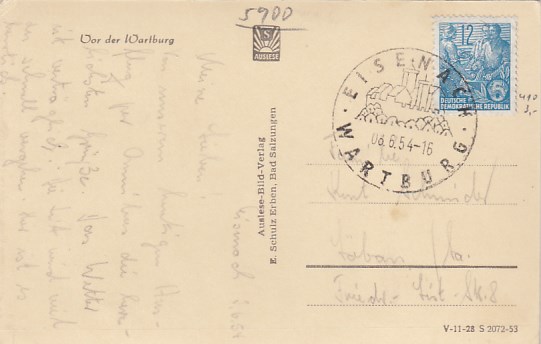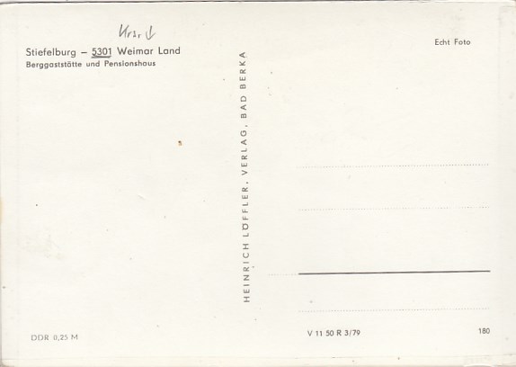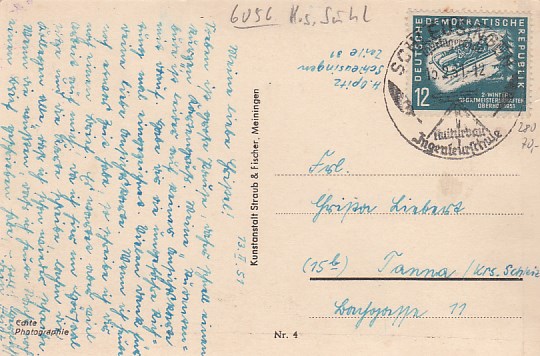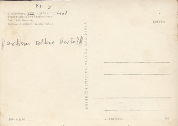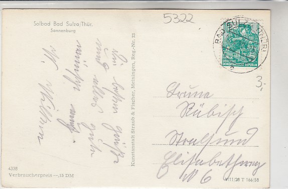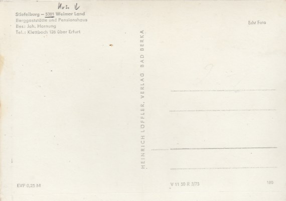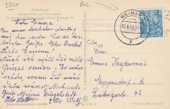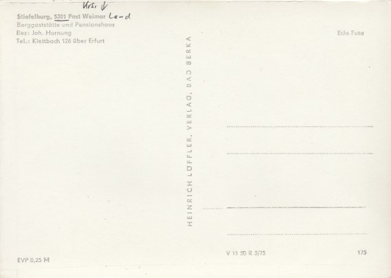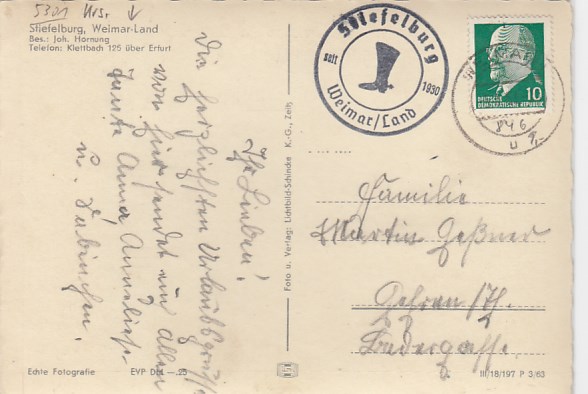 Stiefelburg bei Klettbach Thüringen Landpoststempel 1957