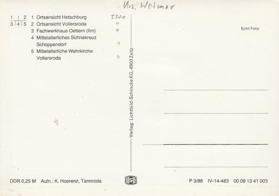 Hetschburg Vollersroda Oettern Thüringen Mittleres Ilmtal 1986
