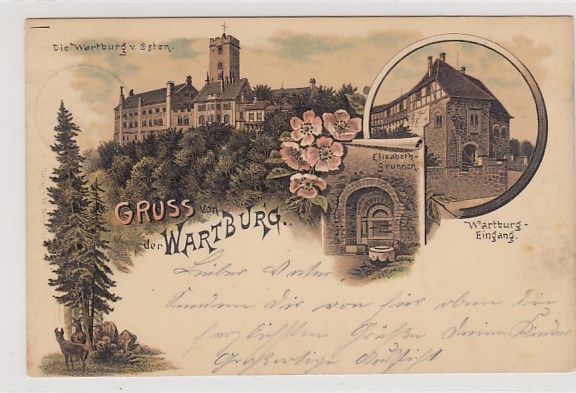 Eisenach in Thüringen Wartburg Litho Ansichtskarte von 1897