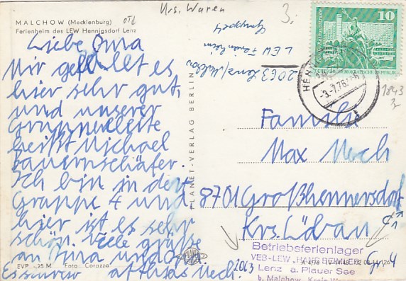 Malchow in Mecklenburg Ferienheim Hans Kahle 1979
