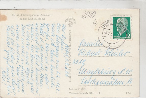 Röbel an der Müritz in Mecklenburg Urlauberdorf Martin Hoop 1970