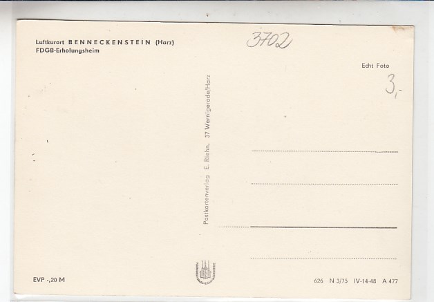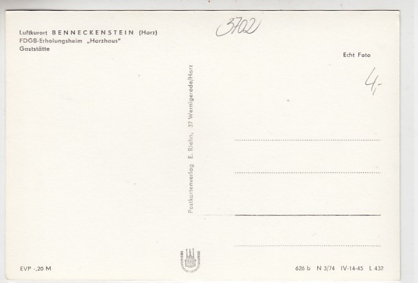 Benneckenstein im Harz FDGB-Heim Harzhaus Gaststätte 1974