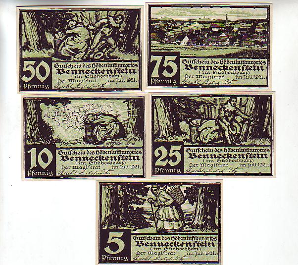 1334 [3702ono] |  | Benneckenstein im Harz 5 Scheine Notgeld | 7.00EUR 3.50EUR | In den Warenkorb |