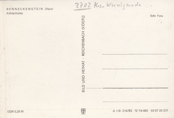 Benneckenstein im Harz Köhlerhütte 1976