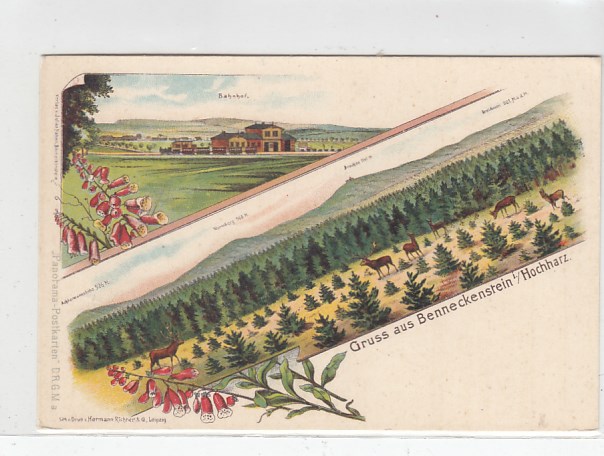 Benneckenstein im Harz Bahnhof Litho Ansichtskarte ca 1900