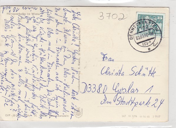 Benneckenstein im Harz Harzquerbahn Kleinbahn im Winter 1974