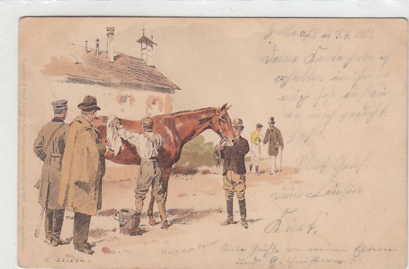 alte Ansichtskarten Bilder Tiere Pferde Reiten Reitsport Künstlerkarte C.Becker 1901