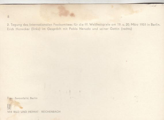 alte Ansichtskarten Bilder Berühmte Persönlichkeiten Politiker Erich Honecker Pablo Neruda 1951