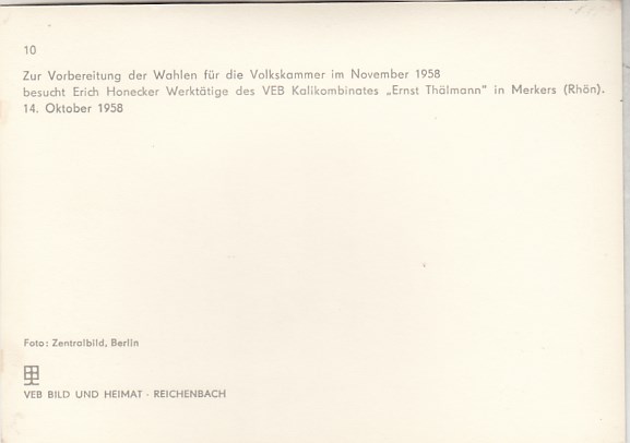 alte Ansichtskarten Bilder Berühmte Persönlichkeiten Politiker Erich Honecker Merkers 1958