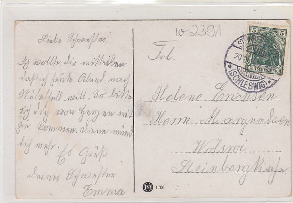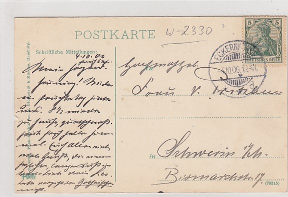 Hamburg Rodenbecker Quellental Stempel Wohldorf 1909