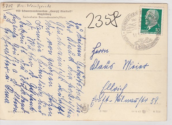 Benneckenstein im Harz FDGB-Heim Georgij Dimitroff 1961