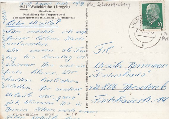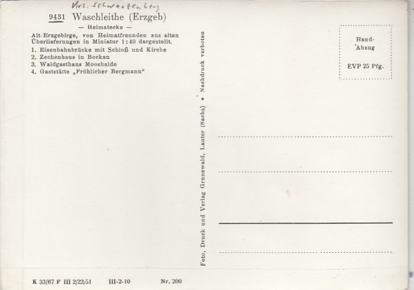 Grünhain-Beierfeld OT Waschleithe im Erzgebirge Heimatecke 1965