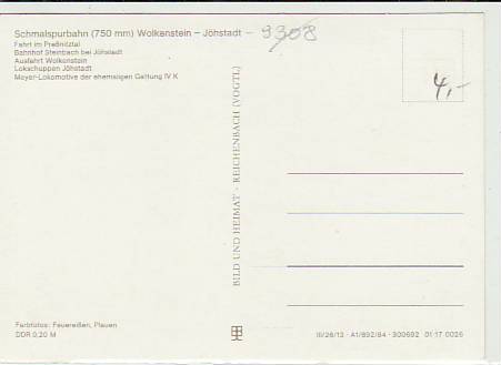 Eisenbahn Schmalspurbahn Wolkenstein-Jöhnstadt 1984