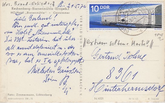 Rechenberg-Bienenmühle Erzgebirge Hotel 1960