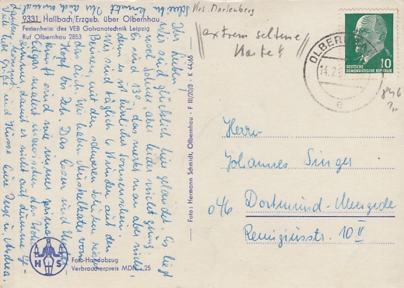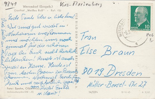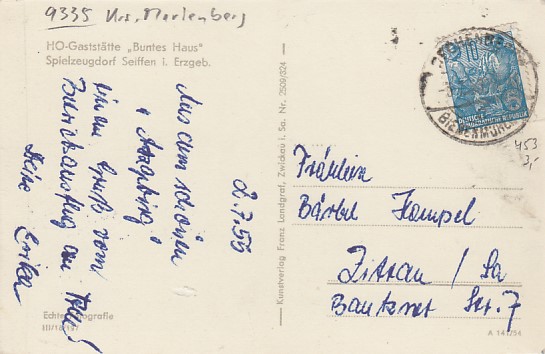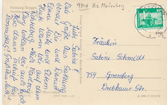 Marienberg OT Satzung im Erzgebirge Gasthaus zur Post 1964