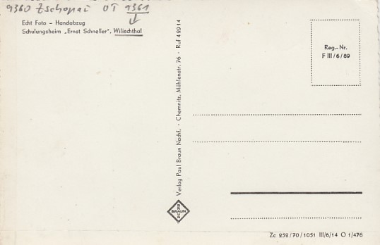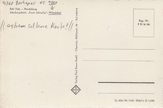 Zschopau im Erzgebirge OT Wilischthal Schulungsheim Ernst Schneller ca 1960