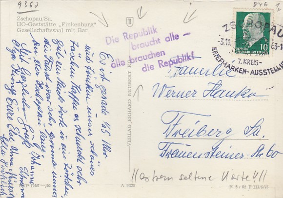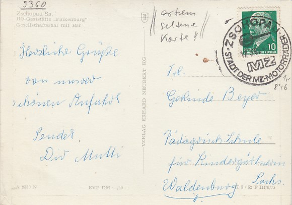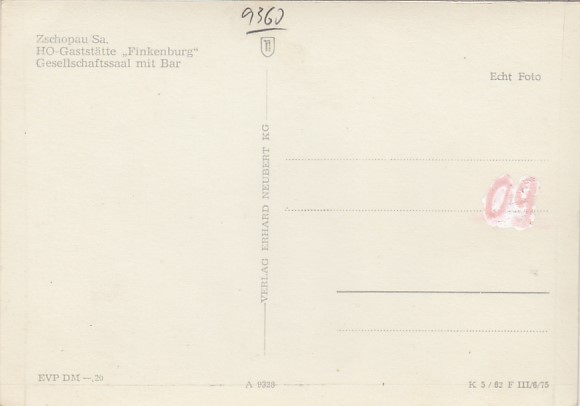 Zschopau im Erzgebirge Gaststätte Finkenburg mit Bar 1962
