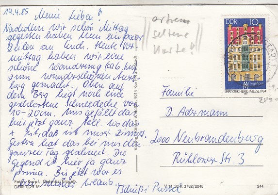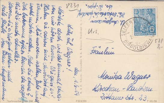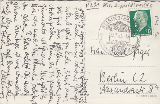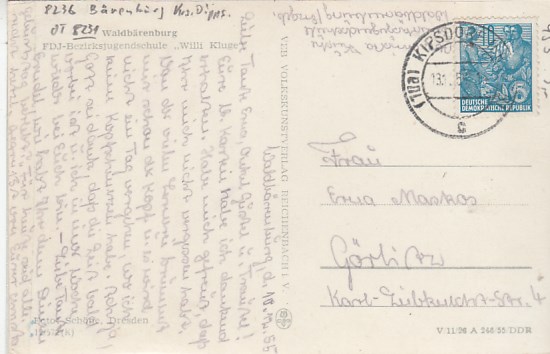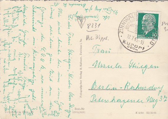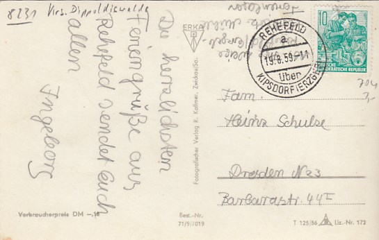 Hirschsprung bei Kipsdorf mit Landpoststempel 1957 im Osterzgebirge