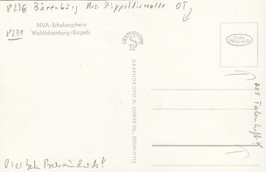 Kurort Waldbärenburg im Erzgebirge NVA Erholungsheim 1962