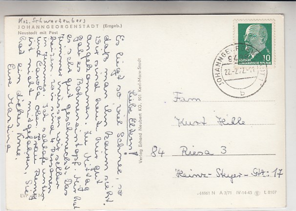 Johanngeorgenstadt im Erzgebirge Postamt Postsäule 1970