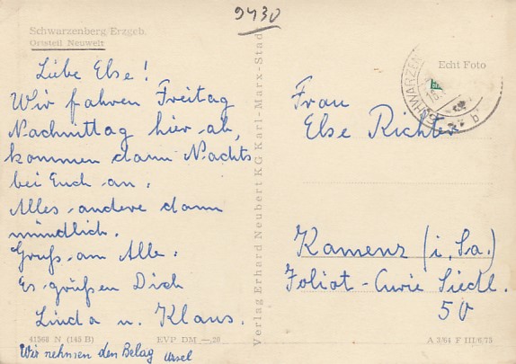 Schwarzenberg im Erzgebirge OT Neuwelt 1964