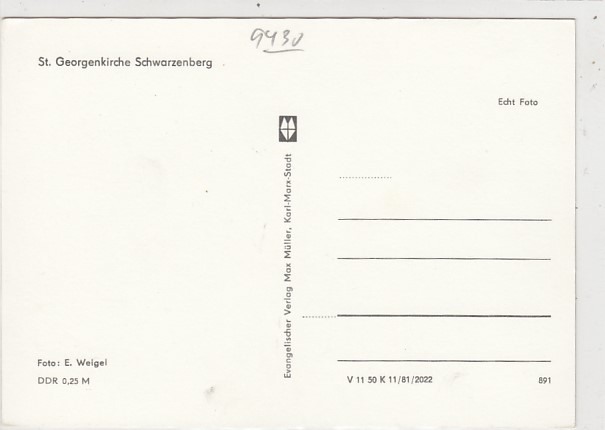 Schwarzenberg im Erzgebirge Kirche SBZ Briefmarke 1948