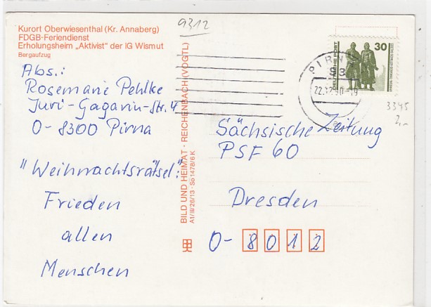 Oberwiesenthal im Erzgebirge Ferienheim Schwarzes Roß 1984