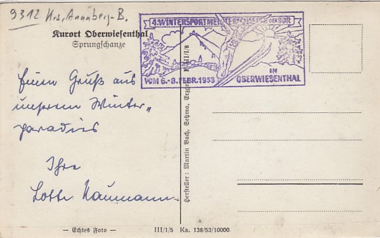 Oberwiesenthal im Erzgebirge Wintersport Skischanze 1953