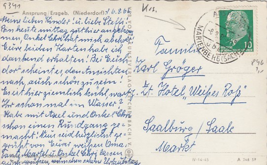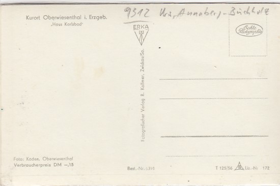 Oberwiesenthal im Erzgebirge Haus Karlsbad 1956