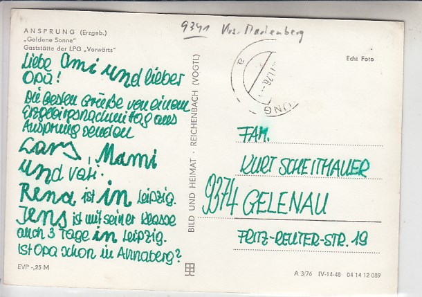 Olbernhau OT Haselbach im Erzgebirge in Sachsen mit Landpoststempel