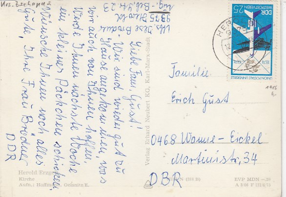 Flöha im Erzgebirge in Sachsen mit Bahnhof und Postamt 1965