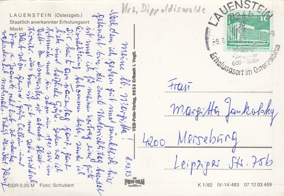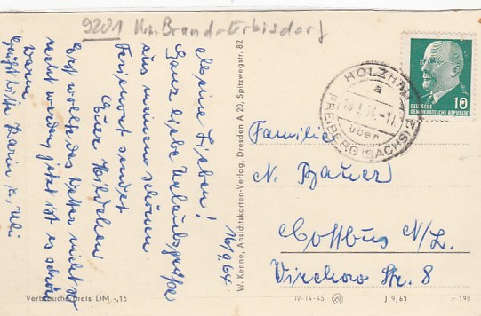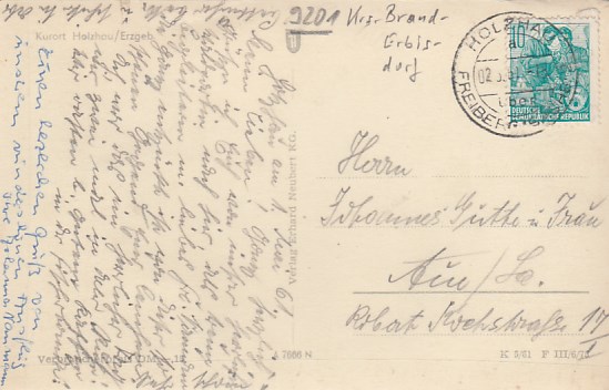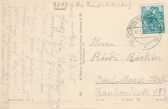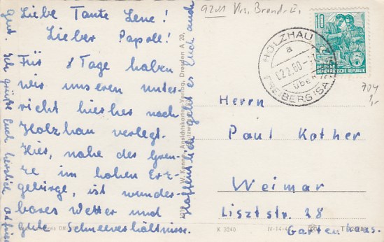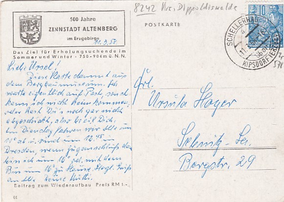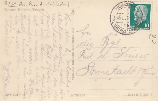 Lauenstein im Osterzgebirge 1954 Bahnpoststempel Dresden-Altenberg